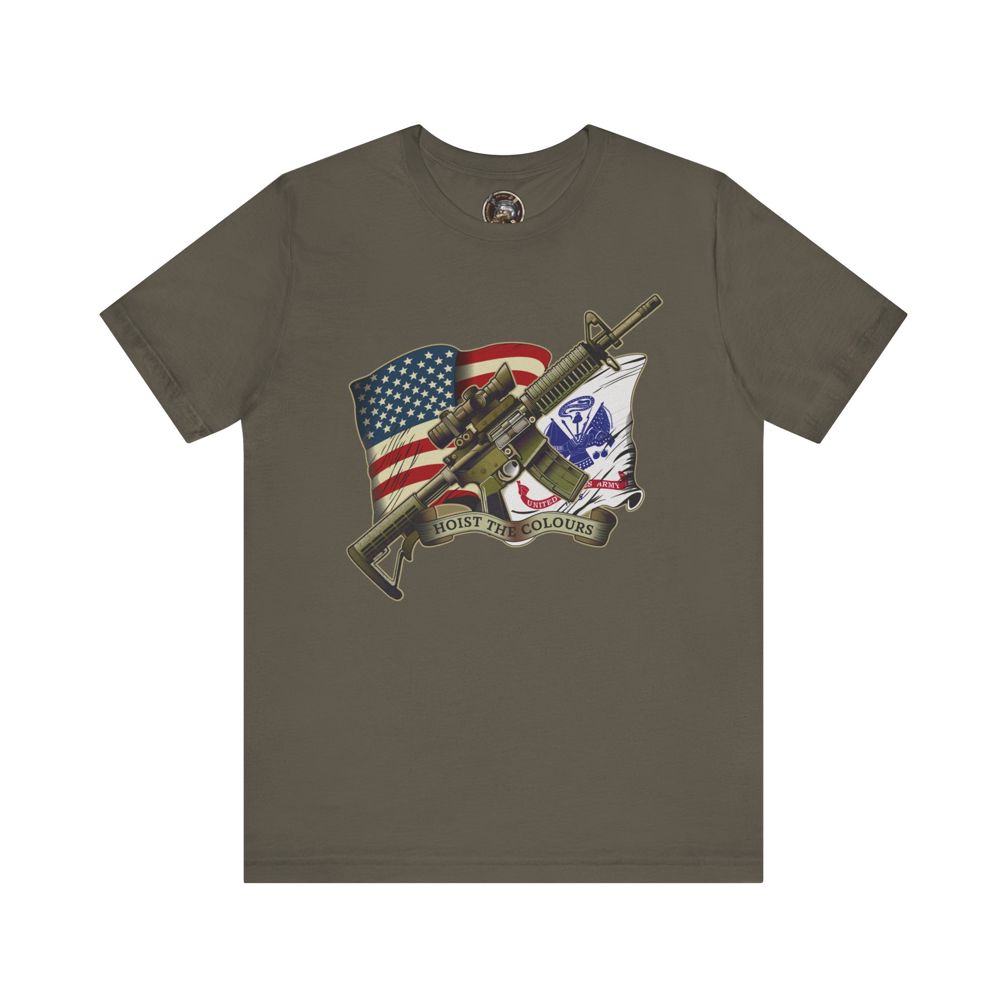 Introducing our Army ‘Hoist the Colours’ T Shirt, perfect for showcasing your unique style with a bold statement. This lightweight, breathable t-shirt effortlessly blends comfort with versatility, making it an ideal choice for any casual outing or relaxed day at home. Whether you’re attending a summer barbecue or simply enjoying a leisurely day, this tee fits seamlessly into your lifestyle. Designed for individuals who appreciate quality and style, it’s perfect for those who want to express their identity through clothing. This tee is especially relevant for holidays such as Independence Day, Memorial Day, or any celebration of freedom and self-expression.